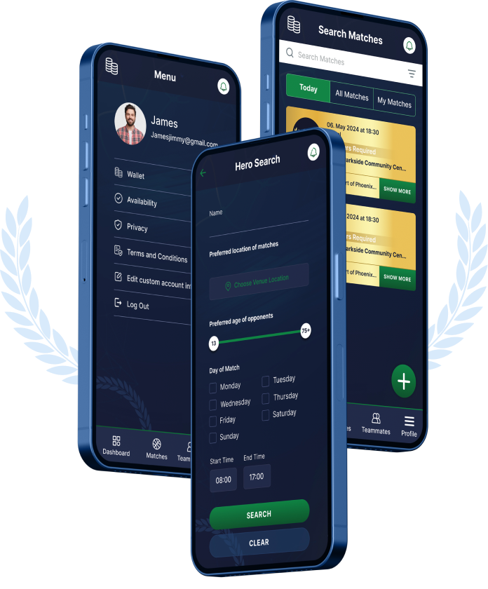 - Set up a profile and let local match organisers know when you are available